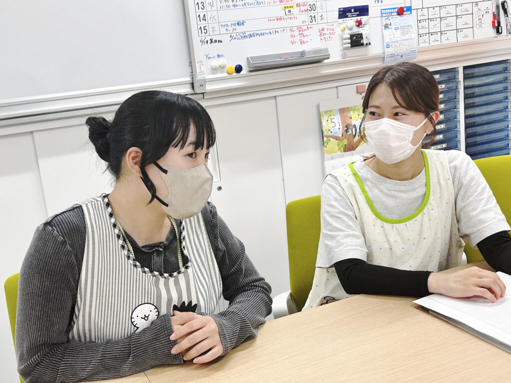 実際に働いてみると、皆さん優しいんです。頭ごなしに叱られるようなことはないというか。うまくいかないようなことがあっても「わたしたちはこうやってるけどどうかな?〇〇先生を真似してみたら?」などと提案してくれます。主担任でやっているのですが、実際に見せてくれるのでイメージが具体的に湧きやすいです。